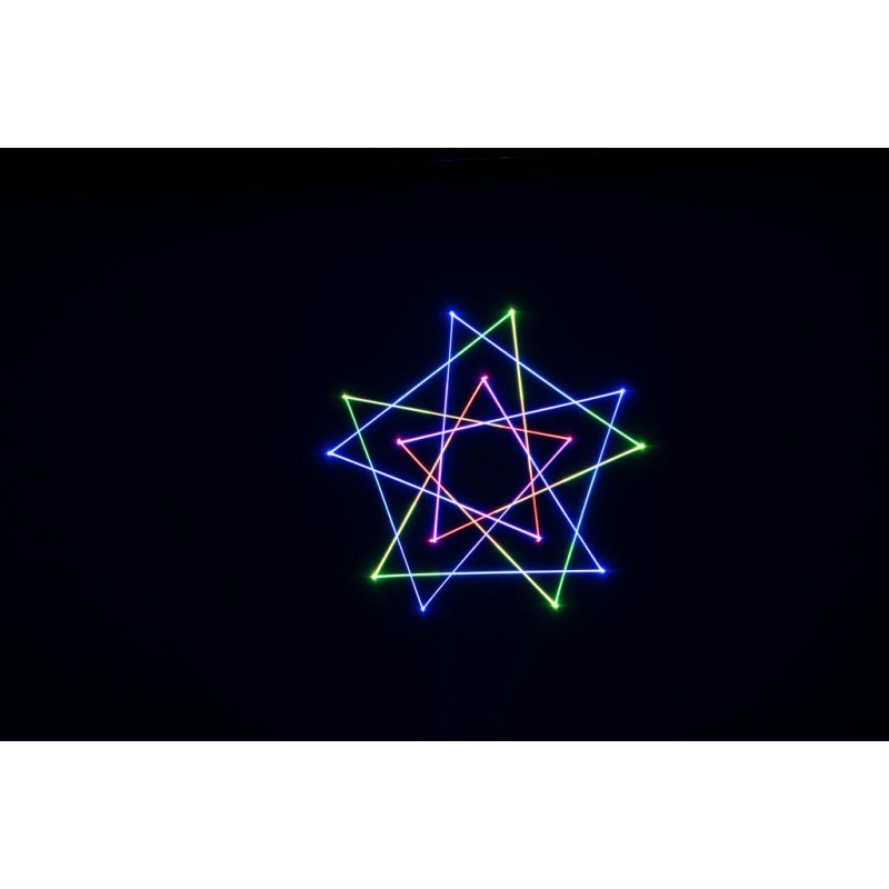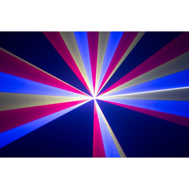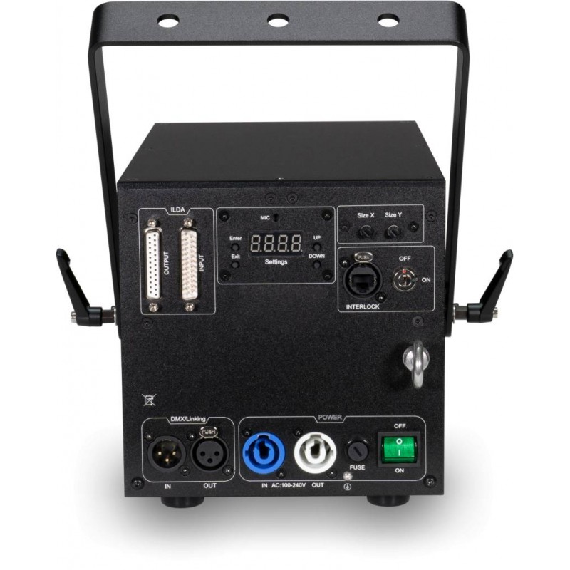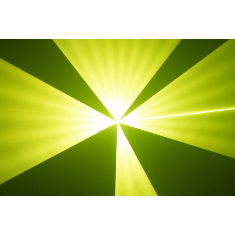 Un potente láser de diodo puro modulado analógico semiprofesional, diseñado para crear intensos efectos láser como haces, ondas y túneles, así como gráficos sencillos.