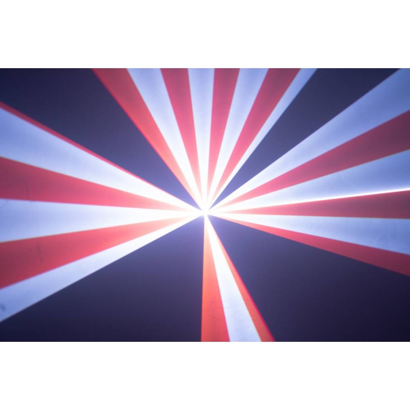 A través de DMX, en el modo automático así como en el modo sonido a luz, se pueden proyectar aprox. 130 (capas, túneles, vallas, olas, etc.) en diferentes colores y a diversas velocidades. Si el modo automático está activo, los patrones preprogramados funcionan de manera autónoma, y en el modo sonido a luz, el sistema láser proyecta de acuerdo con el sonido.
