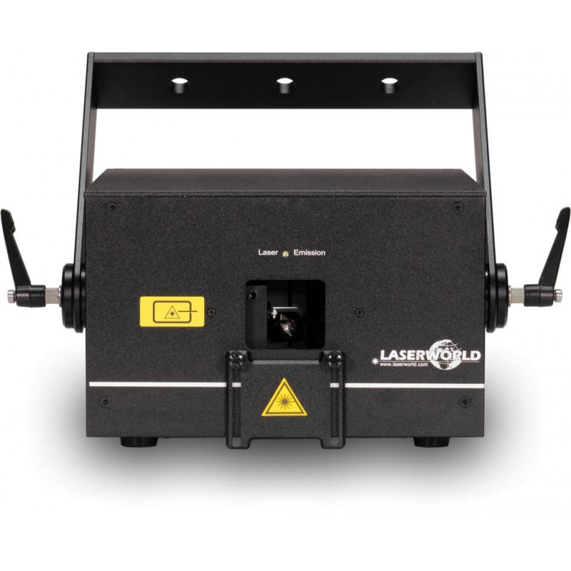 Laserworld DS-3000RGB FB4 MK53'000 mW potencia garantizada Capacidad gráfica - 40 kpps@8° Ángulo máximo de exploración 40° Mezcla de colores completa - modulación analógica Haces intensos extremadamente nítidos - ca. 4 mm diámetro del haz y baja divergencia de 0.9 mrad Enlace de varias unidades con Power linking, DMX e ILDA Múltiples modos de control -...