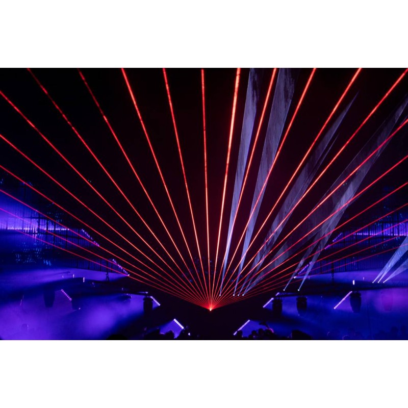 La luz láser para espectáculos Laserworld PL-30.000RGB IP65 está completamente equipada con diodos y tiene un buen balance de blancos, con un comportamiento de atenuación de color lineal y alta visibilidad.