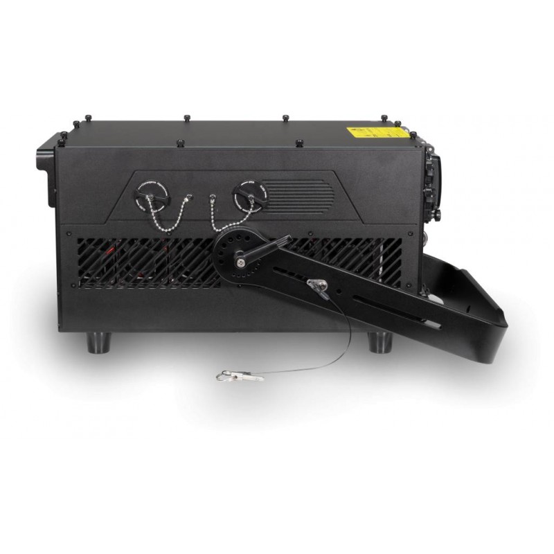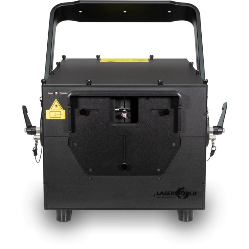 El proyector láser para espectáculos Laserworld PL-30.000RGB FB4 IP65 cuenta con una carcasa compacta y ligera, y un soporte estable de 360°. El soporte permite diversas posiciones de montaje: se puede instalar tanto suspendido como de pie, ideal para DJs móviles y espectáculos láser temporales, pero también para instalaciones fijas en trusses o en el techo.