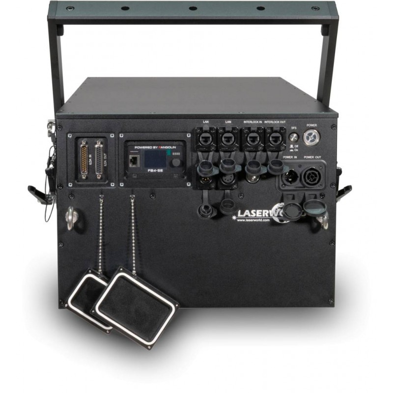 Las unidades Laserworld PL-70.000RGB FB4 IP65 tienen un DAC de red integrado para Showcontroller y Showeditor, pero también pueden ser controladas con cualquier software de control láser ILDA como Pangolin Quickshow, Pangolin Beyond, LSX, Lasergraph DSP, etc. a través de la interfaz ILDA externa (por ejemplo, FB3). También tienen una memoria incorporada con patrones preestablecidos, que pueden ser fácilmente activados a través de DMX, modo automático y modo audio-luz.