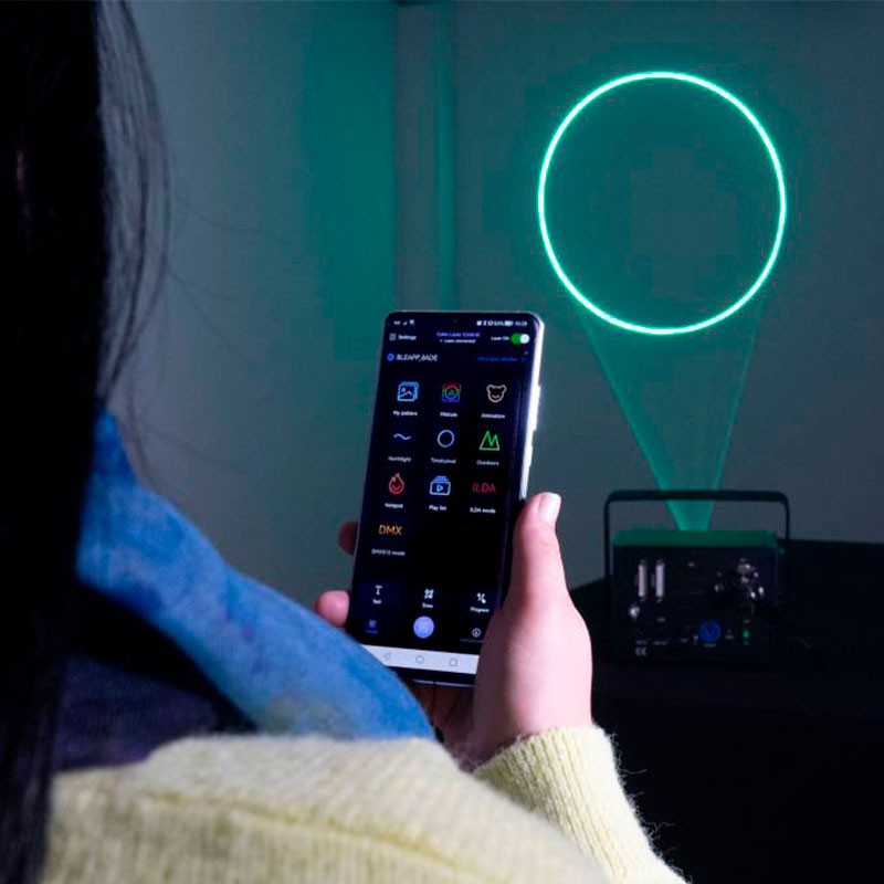 Laser CUBE 1,5 | Laserworld Controlable mediante aplicación móvil Batería integrada (3500 mAh) Potencia típica de 1.5W Sistema láser solo con diodos Controlable por ordenador mediante ILDA Modo sonido-luz y modo autónomo Controlable por DMX, posibilidad de funcionamiento maestro-esclavo Escáneres