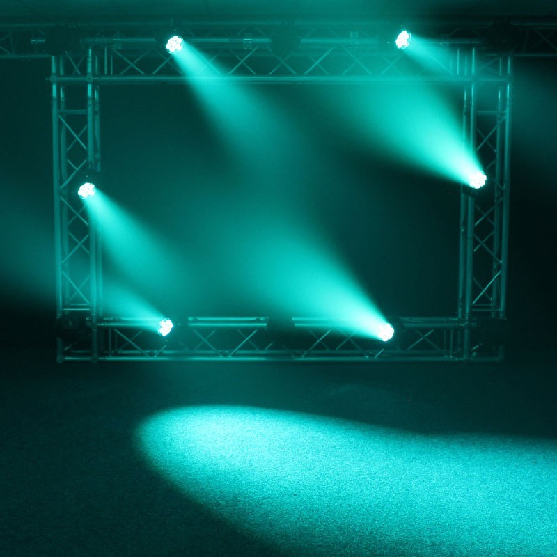 Proyector PAR 64 112 LED de 12W RGBWAUV Alu HEX Par 64)Con 12 LED de seis colores de 12 W, el Alu HEX Par ofrece una mezcla de colores suave, desde ricos tonos saturados hasta sutiles tonos pastel. Estas unidades tienen carcasas resistentes y cuentan con un menú LED de 4 botones que permite un fácil acceso a una variedad de funciones, incluido DMX....