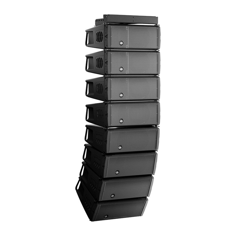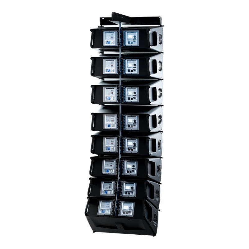 Sistema line array auto amplificado LARA-100| DAS AudioLine Array autoamplificado cardioide Amplificador de 8 canales, Clase D, 6000Wrms Dispersión horizontal controlada hasta 100 Hz. Atenuación cardioide de -15dB (63 Hz – 200 Hz) Control y monitorización IP a través de ALMATM Procesado FIR y gestión digital via DASaimTM