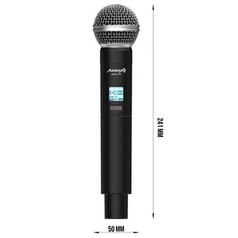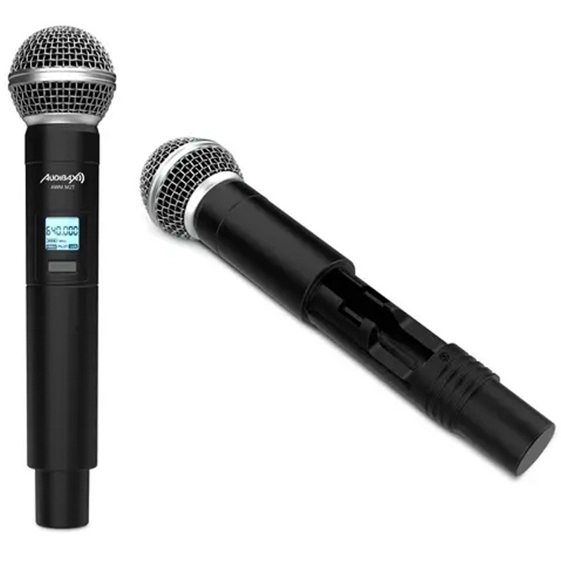 Audibax AWM M1T Micrófono Inalámbrico de Mano El AWM M1T es un micrófono inalámbrico UHF profesional con emisor tipo hand mic, ideal para directos, eventos, presentaciones y sonorización general. Dispone de 100 canales seleccionables en el rango 640–690 MHz, ofreciendo una transmisión estable y fiable en entornos exigentes.