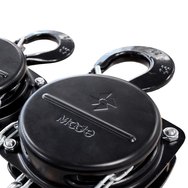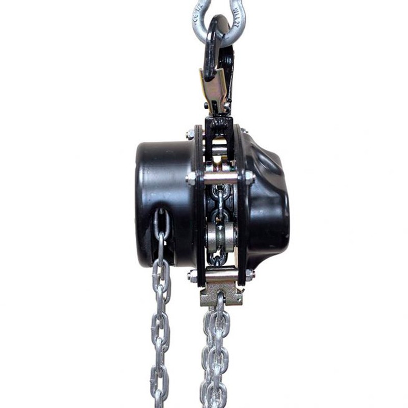 Polipasto "todo acero". Ejes, piñones, nuez y ganchos de acero tratado. SWL (CMU): 1.000 Kg. Cadena de carga de alta resistencia grado 80. El modelo mostrado tiene 10 mts de cadena, para otras longitudes de cadena puede solicitar presupuesto. En la fotografía se muestra polipasto de 500 Kg.