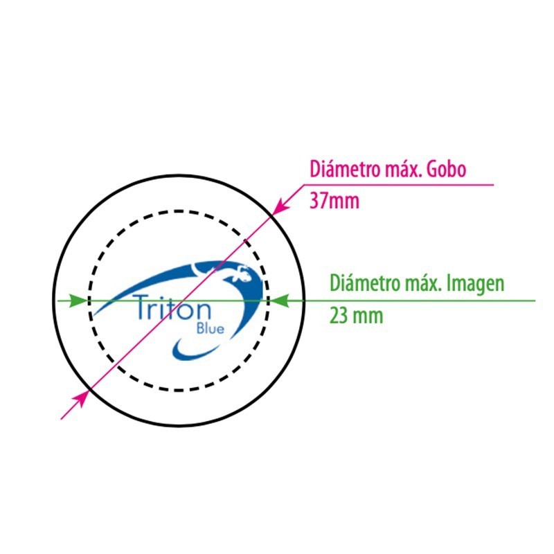 Proyector LED de gobos rotativos de 40W IP65 Triton-Blue Lente 1:0:25 El proyector ideal para instalaciones exteriores comerciales donde se necesita la precisa proyección de gobos con imágenes en alta calidad.Proyector de gobos de 40W con LED CREE IP65 Fácil cambio de gobo Grupo óptico de alta calidad generando imágenes de alta resolución Pequeño tamaño...