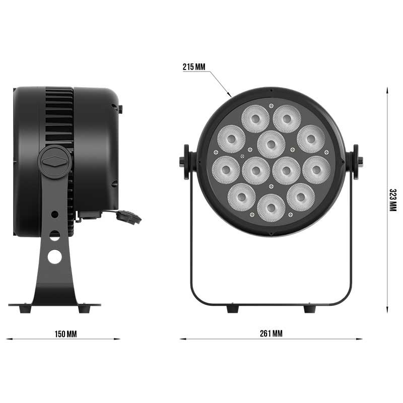 Proyector IP65 PAR WASH 19 LED de 12 RGBW apertura de haz 26ºControl Full HD de los LED Fabricado en aluminio muy resistente CTB y CTO, temperatura de color lineal de 2.800 K a 8.000 K Hasta 16,7 millones de colores RGBW con control de saturación total Apertura del haz de salida de 26º aportando una luminosidad a 1 m de 28.800 Lux Conectores IP65...