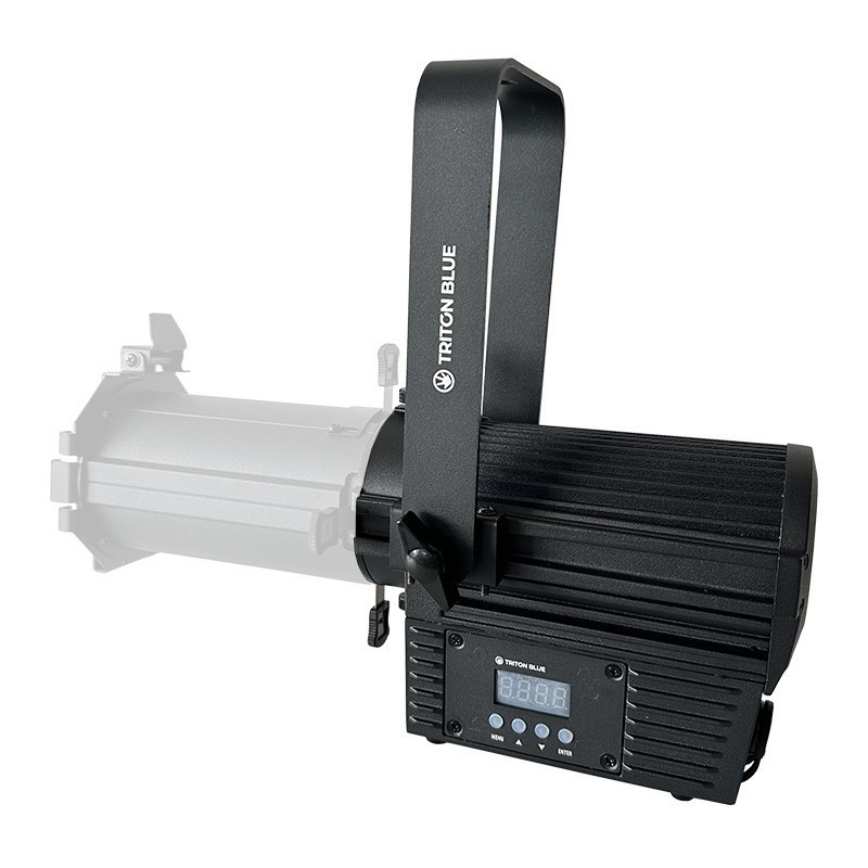 Proyector LENTE PC LED COB 160W | Triton BlueProyector con lente PC (Plano Convexa) con LED blanco COB de 160W y ZOOM motorizado. LED COB de 160W blanco cálido. Proyector silencioso. CRI:≥ 95Ra. Acceso directo y simultáneo al zoom dimmer y motorizado via DMX. Luminosidad similar a un proyector halógeno de 1000W