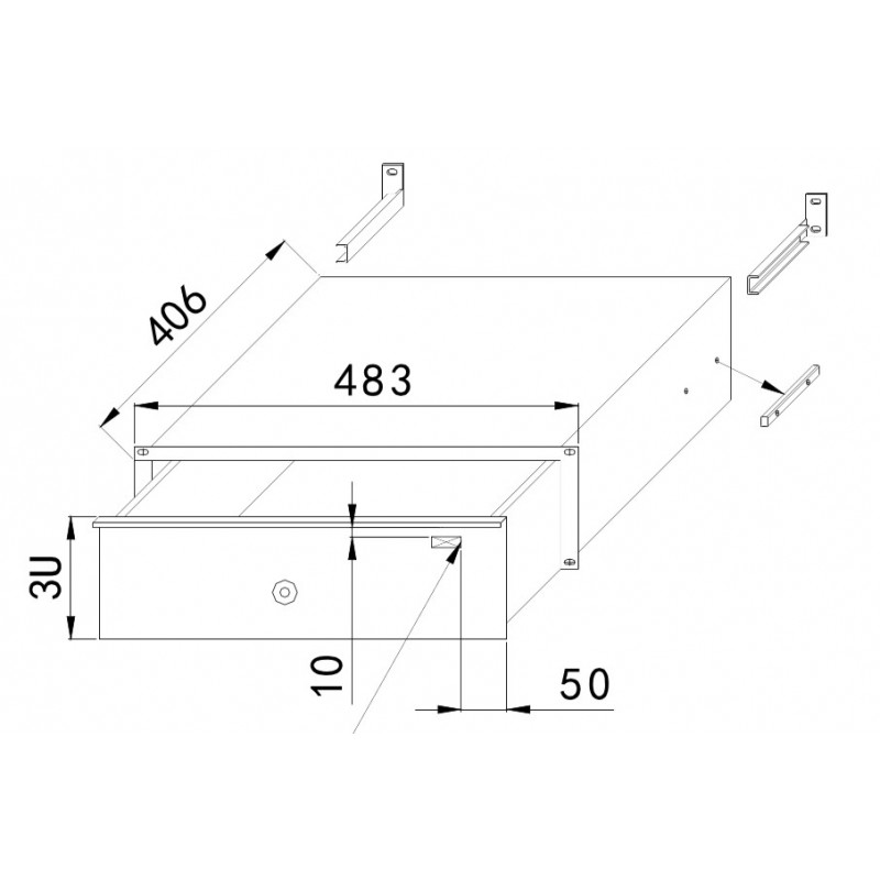 Cajón formato rack 19" de 3 unidades de altura y cerradura con llave Factor RACKCajón de rack con guía de rodamientos de bolas, Corredera deslizante del cajón Construcción sólida de acero laminado en frío Cerradura con 2 llaves incluidas