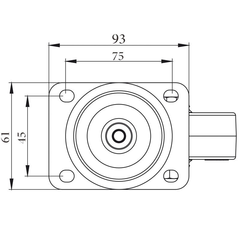 Rueda giratoria azul sin frenoDiámetro: 125 mm Ancho del eje: 50 mm M10 Peso: 1.9 kg Capacidad: 200 kg Medidas: 80 x 60 / 52 mm Las ruedas de plástico azules no dejan marcas en superficies blandas, como suelos de gimnasios o suelos de danza.