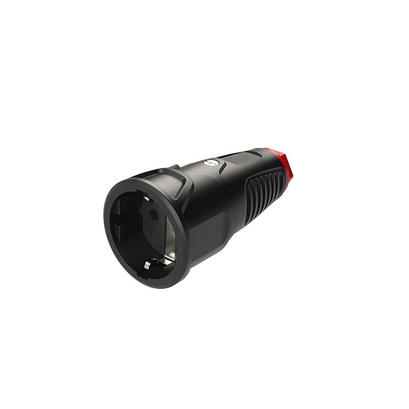 Clavija macho aereo tipo shcuko de 2P + T 16A El conector mas utilizado en el sector audiovisual para todo tipo de aparatos, prolongadores, alargadores, bifidos.... Es importante que este tipo de conector sea duradero y resistente, trabajan siempre en condiciones extremas y sumamente importantes en cualquier tipo de instalación tanto fija como eventual.