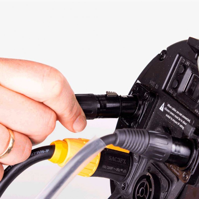 Cable DMX AES de 20 m. con conectores Neutrik XLR de 3 PINCable DMX con cubierta sólida y flexible Highflex Conductores trenzados AWG 22 Diámetro exterior de 6.5 mm (Ø) Cobre sin oxígeno Manga retráctil transparente de 60 mm para facilitar la identificación Contactos de plata, carcasa XLR de metal negro marca Neutrik