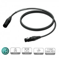 Cable DMX 5 Pin XLR Macho / DMX 5 Pin XLR Hembra, 10 metros, Procab CLD955/10Cable para señal DMX 512 Con conectores XLR de 5 Pin Para instalaciones fijas y eventuales Largo del cable 10 metros Conductores trenzados delgados y densos de 24 AWG Cubierta de PVC flexible Doble blindaje (Al-foil + Trenzado) Diámetro exterior de 6.0 mm (Ø) Cobre sin oxígeno