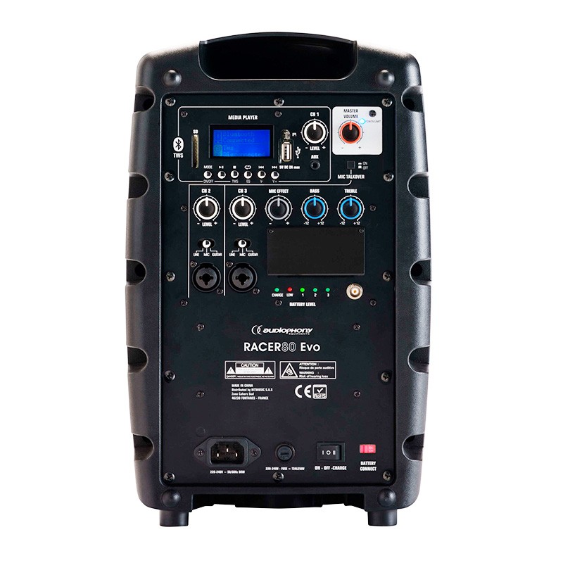 AUDIOPHONY RACER60 EVO ALTAVOZ PORTÁTIL A BATERÍA 6" 80W RMScon unidad USB/SD/BT5.0 + talkover + efecto