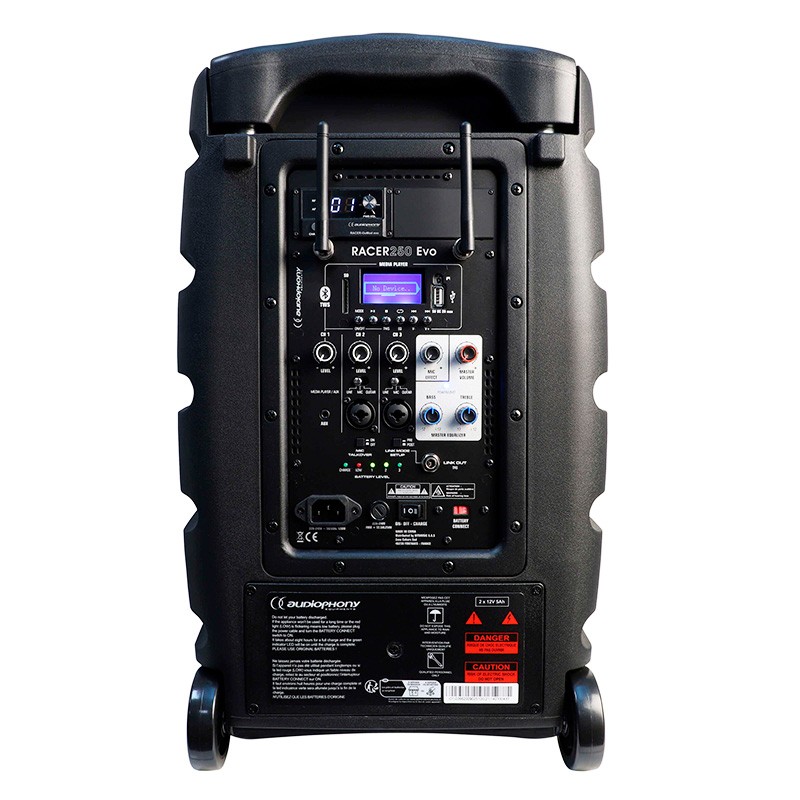 AUDIOPHONY RACER250 Evo ALTAVOZ PORTÁTIL A BATERÍA 12" 250W RMS CON LECTOR DETARJETAS USB/SD/BT5.0 + talkover + efecto