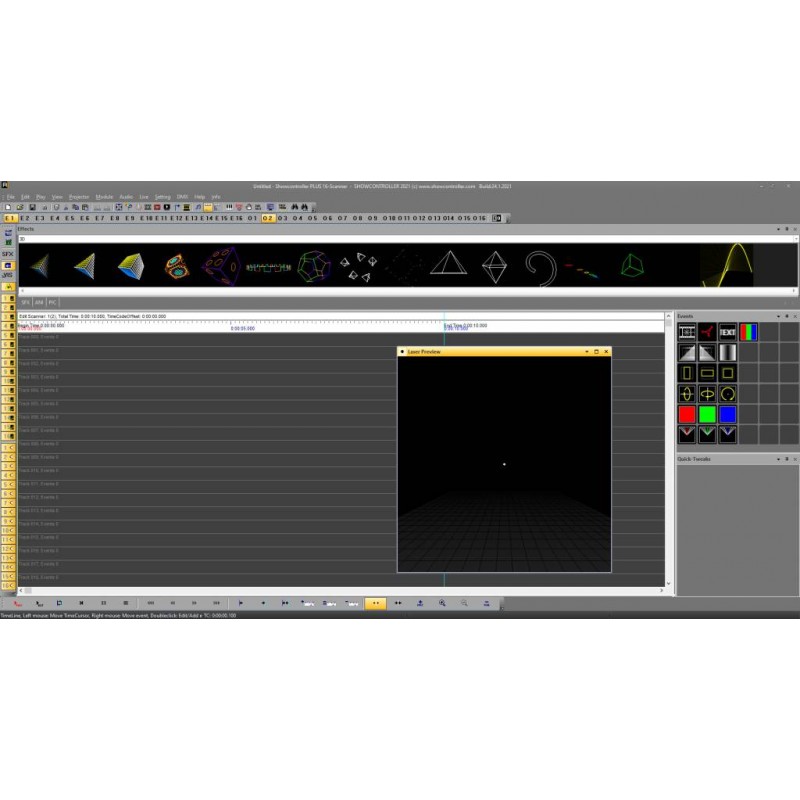 Software completo para espectáculos láser y multimedia con control en vivo y en línea de tiempo.