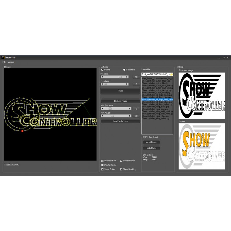 El programa ShowController Tracer se desarrolló específicamente para el trazado vectorial de imágenes de píxeles, como archivos JPG, para que sean compatibles con láser. Simplemente selecciona una imagen, como un logotipo, y conviértela.