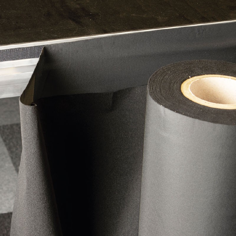 Rollo de tejido para cubrir la parte frontal de tarimas y escenarios rollo 60 m de largo x 40 cm de alto Ultimas unidadesCuando necesites cubrir la parte visual del frontal de las tarimas y escenarios, con este producto podrás de una forma fácil, rápida y económica dar un acabado al escenario. Este tipo de rollo no solo se puede utilizar para esta...