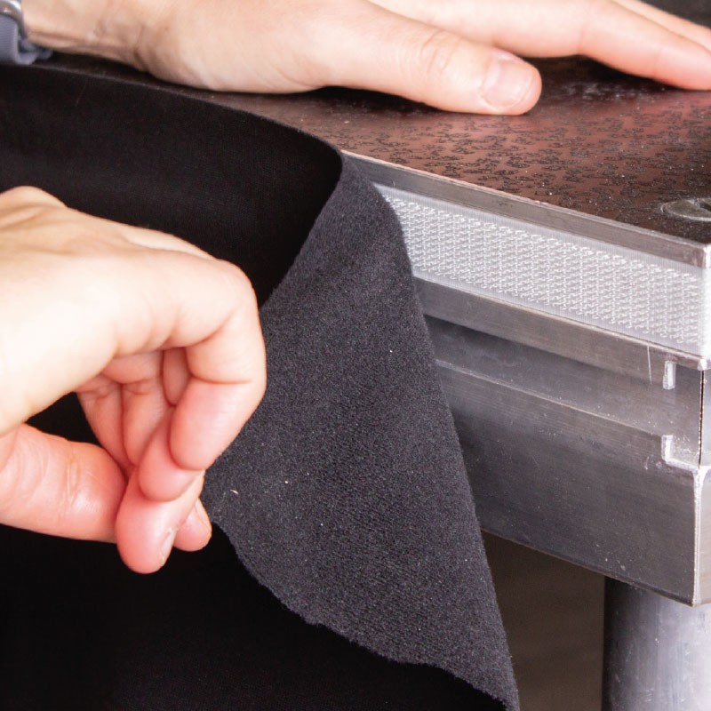 Rollo de tejido para cubrir la parte frontal de tarimas y escenarios Cuando necesites cubrir la parte visual del frontal de las tarimas y escenarios, con este producto podrás de una forma fácil, rápida y económica dar un acabado al escenario. Este tipo de rollo no solo se puede utilizar para esta aplicación, sino que también te permitirá hacer patas...