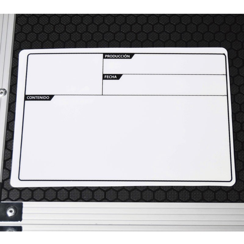 Etiqueta Adhesiva para Flightcase de 177 x 127 mm.Identifica tus Flighcase de una forma fácil, duradera y económica, gracias a esta Etiqueta Autoadhesiva de 177 x 127 mm. (disponible en otros tamaños), de color blanco y superficie con lámina transparente Se puede limpiar y reutilizar con facilidad, sin decolorarse.